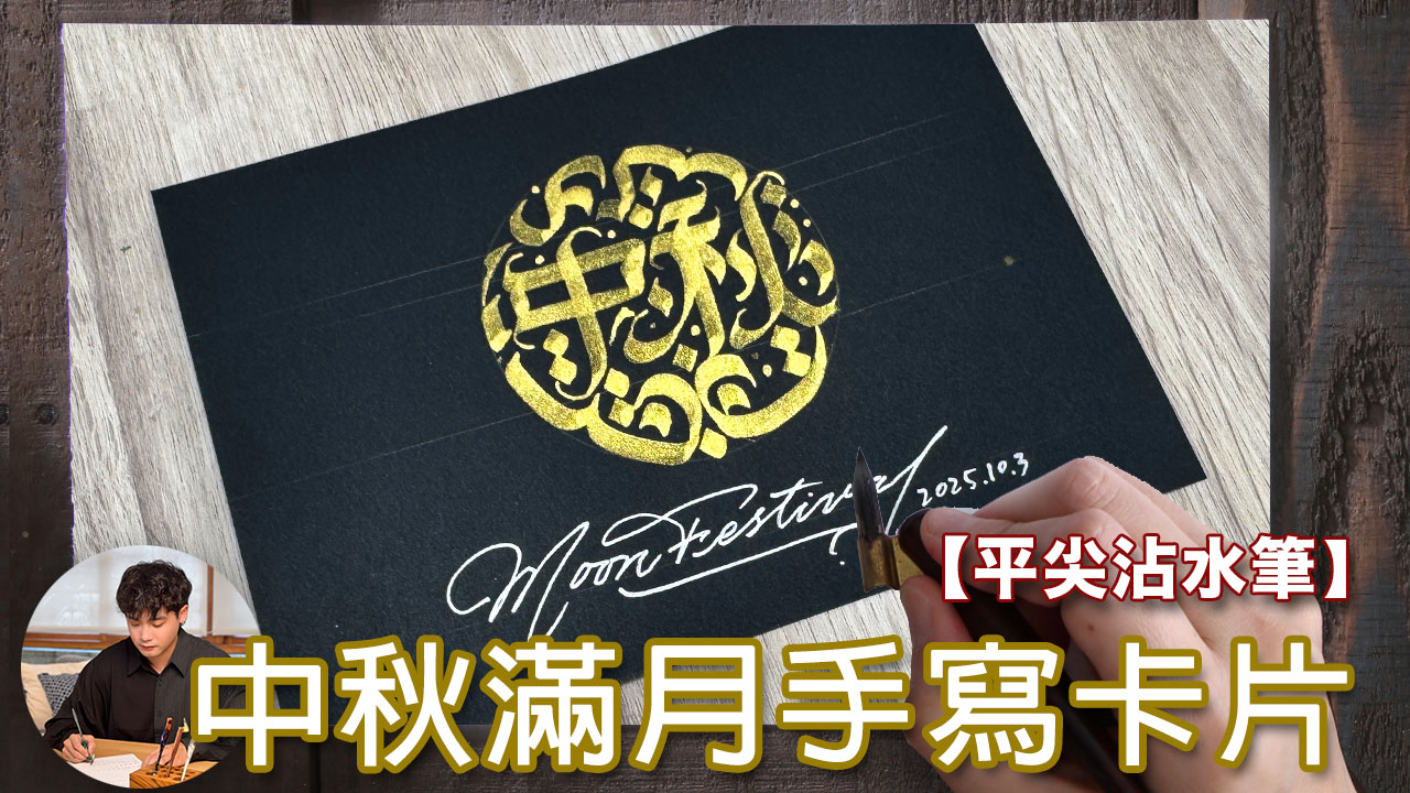 Reading....一起畫一張「藏著 中秋 二字」的滿月卡片,示範如何用 平尖筆 寫出有趣的 中文字!