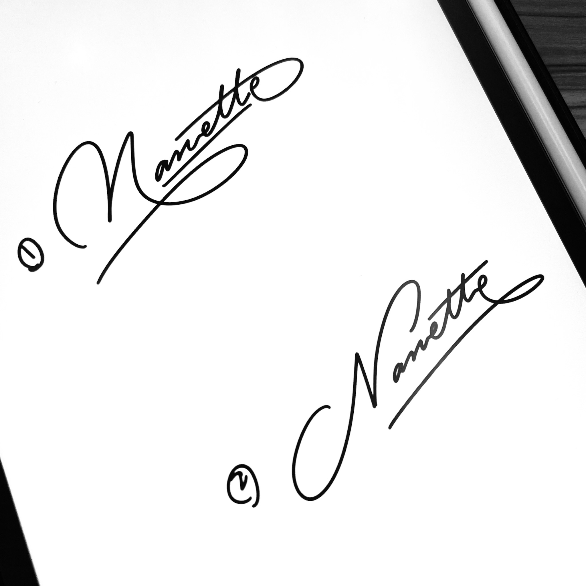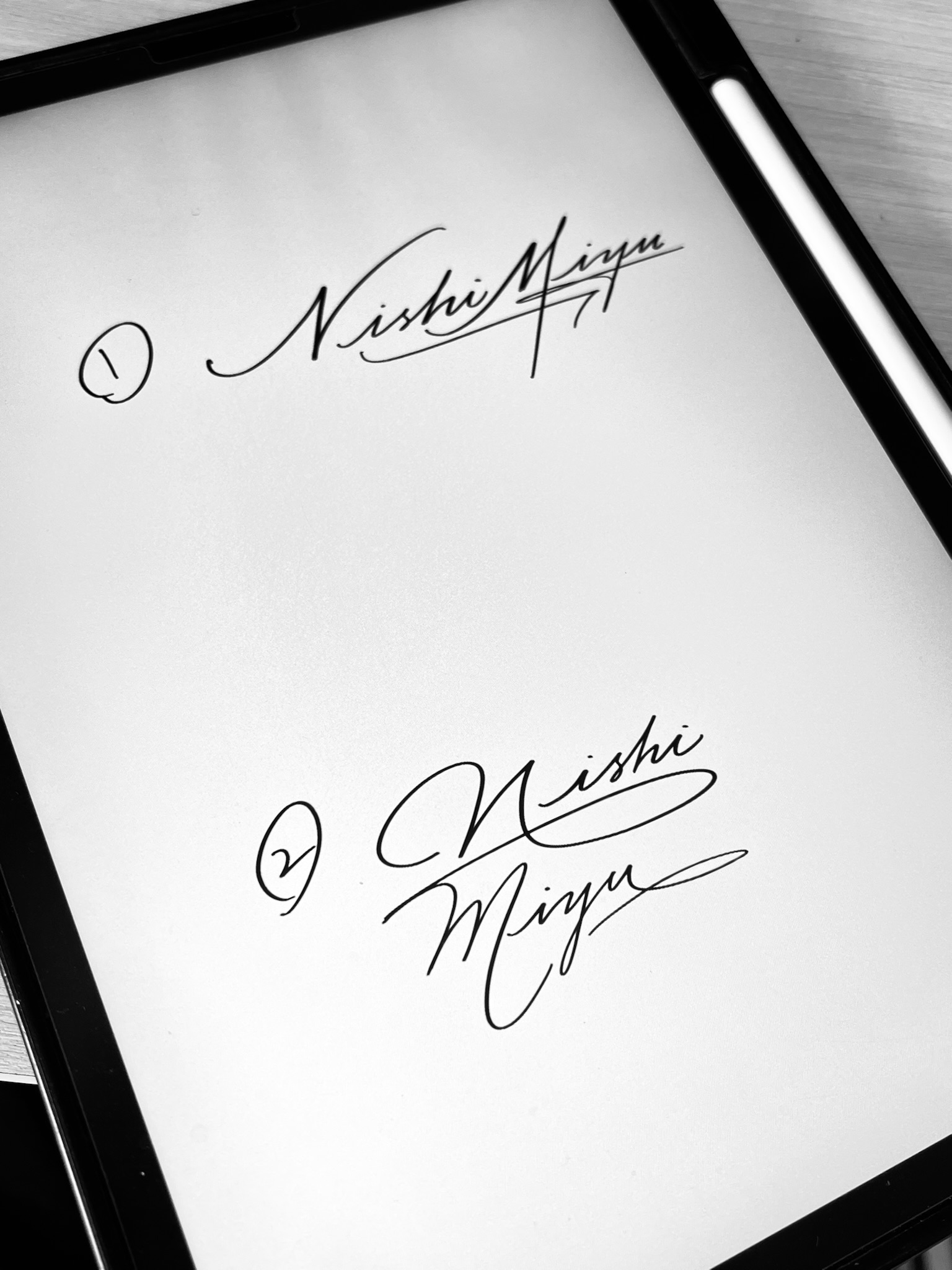 1️⃣ 柔和流線款 開場是一筆大弧度的 N, 中段接入輕快的連續筆觸, 最後用一個長線把名字拉出「高級感」。