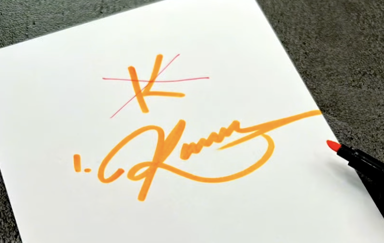 Reading....大寫K字母有種獨特的魅力,尤其是右邊獨特的角度與筆畫,我們一起來練習如何讓K在簽名中更加迷人!
