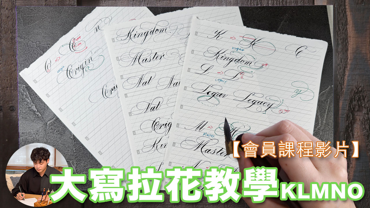 練習在基礎的字體上,加入各種不同的 Flourishing 曲線,一開始我會建議先用”鉛筆”在教材上構圖練習…
